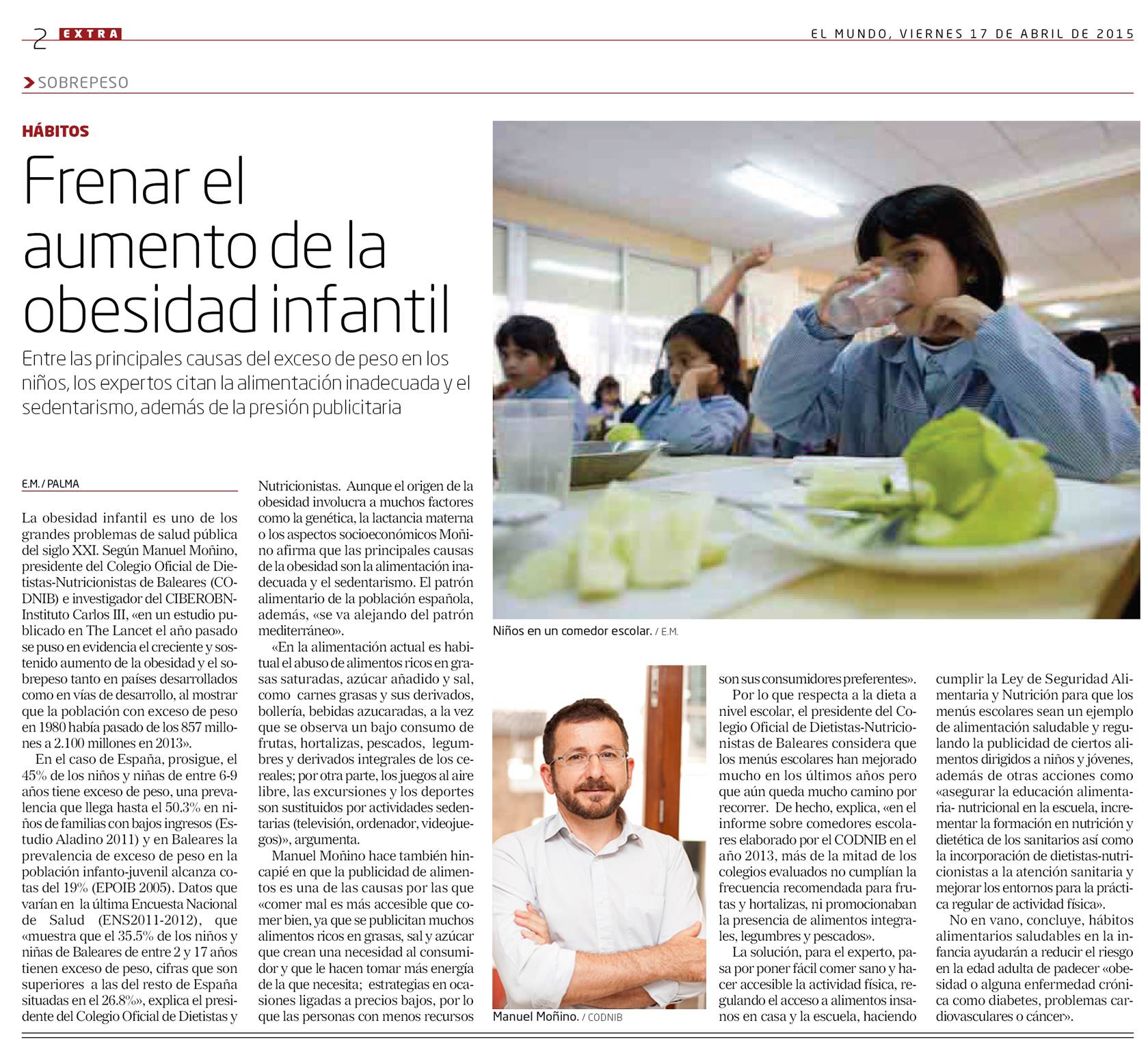 A continuació es mostren part dels continguts de l'entrevista realitzada per El Mundo de Baleares al president del Col·legi Oficial de Dietistes-Nutriconistista de les Illes Balears.
