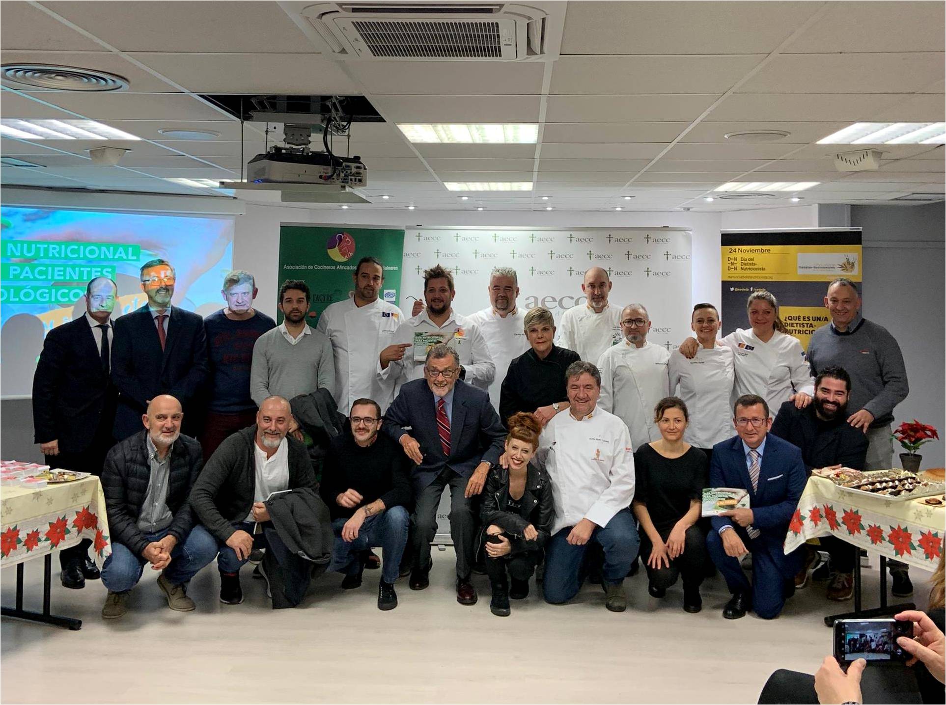 Palmell 18 de desembre de 2019. Representants de la Junta de Balears de l'Associació Espanyola Contra el Càncer (AECC), l'Associació de Cuiners Afincats a les Illes Balears (ASCAIB) i el Col·legi Oficial de Dietistes-Nutricionistes de l'arxipèlag (CODNIB) van presentar la Guia nutricional per a pacients oncològics i les receptes. Al receptari es dóna veu a diferents tipus de cuina; des de vegana i asiàtica fins a receptes tradicionals de la dieta mediterrània elaborades amb productes típics de Balears. El principal objectiu d'aquest manual és que serveixi d'eina d'assessorament nutricional per a pacients i familiars.