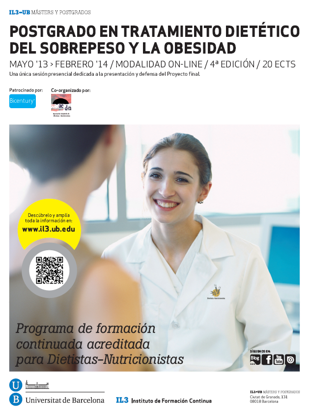 Dirigido a dietistas-nutricionistas. Se requiere la Diplomatura o el Grado en Nutrición Humana y Dietética.